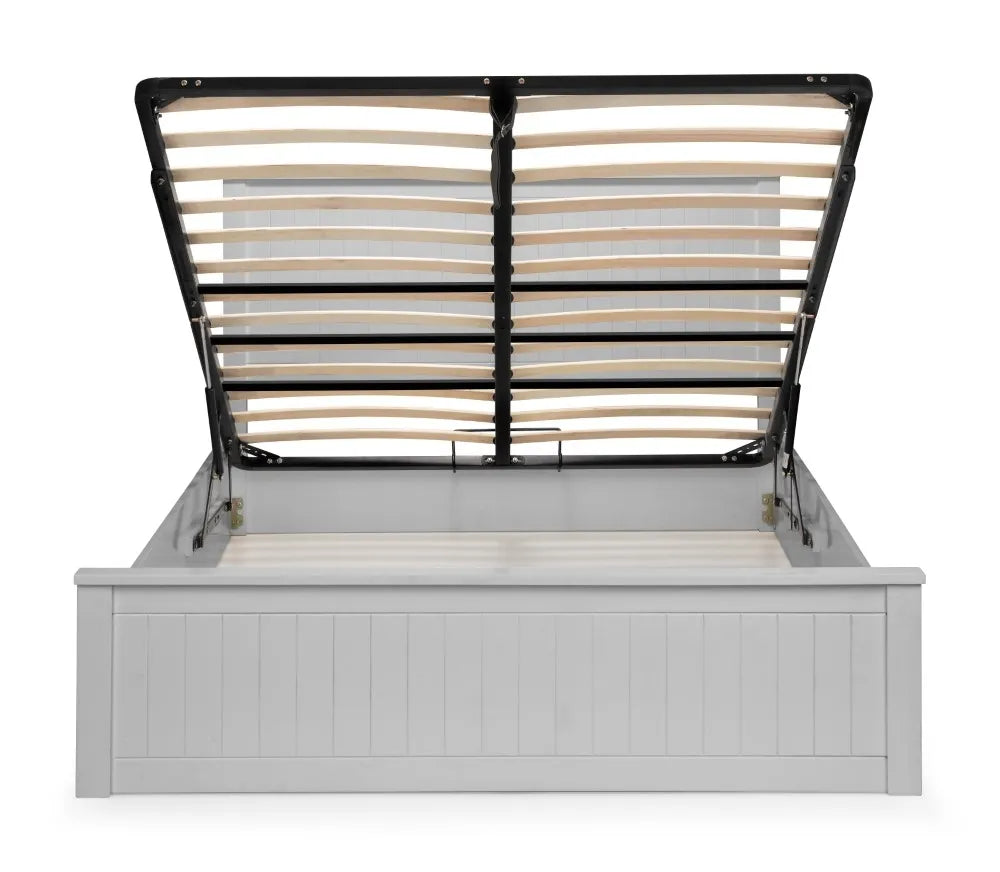 The Maine Ottoman Bed adds a touch of elegance to your bedroom with its classic aesthetic, seamlessly fitting various decorative styles. Designed to create a calm and peaceful environment for a restful night's sleep, the bed features an easy-lift ottoman that offers ample storage space, perfect for bedding and other essentials.