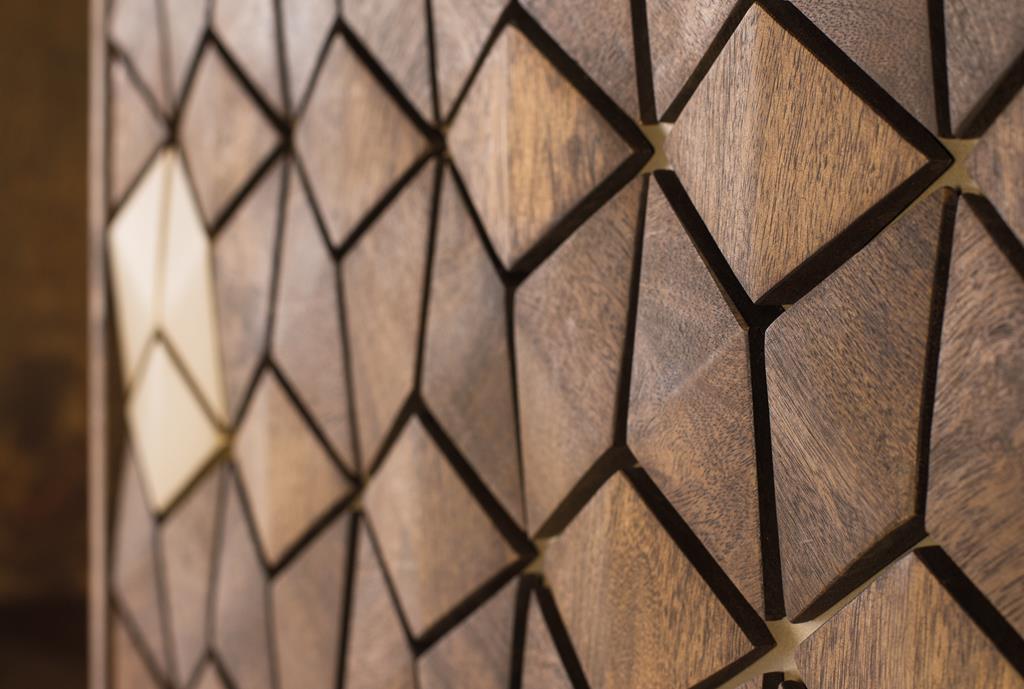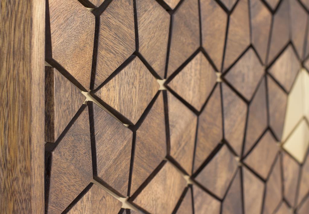 Crafted from solid mango wood and metal, this stylish bookcase features three doors and three open shelves for ample storage and display. Finished in walnut with gold accents for a sophisticated look.