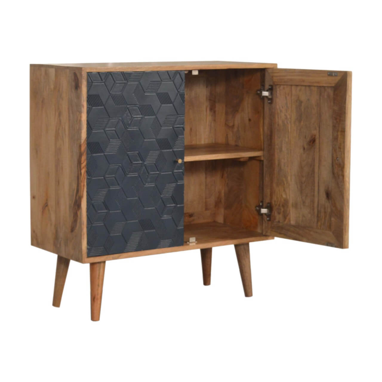 Crafted from solid mango wood with oak effect and navy painted doors, it's an attractive addition to any living space.
