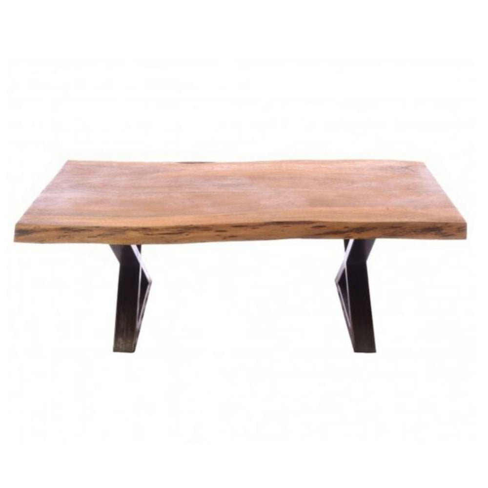 Crafted from solid mango wood and paired with a sturdy black metal base, this table provides both stability and industrial style. Functional and beautiful, it's a must-have for any living room.