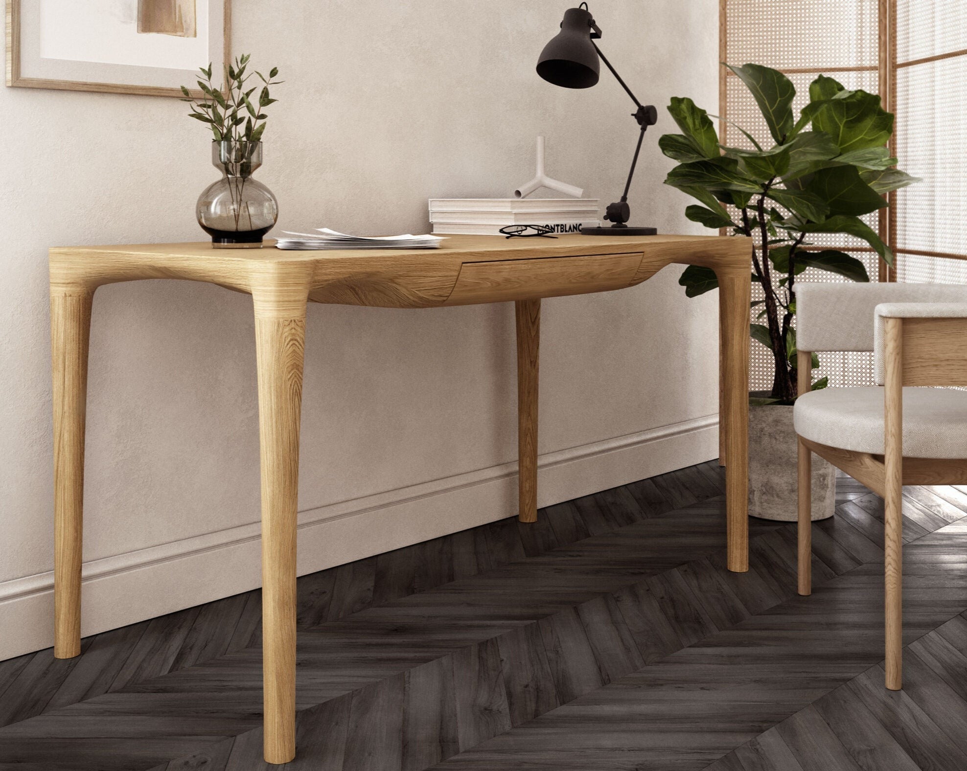 The Hoya desk is the culmination of our meticulous search for a lightweight form crafted entirely from one hundred percent oak wood.