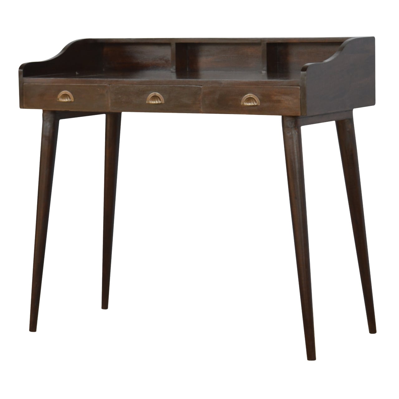 Mango Wood Nordic 3-Drawer Gallery Back Desk, Walnut Finish