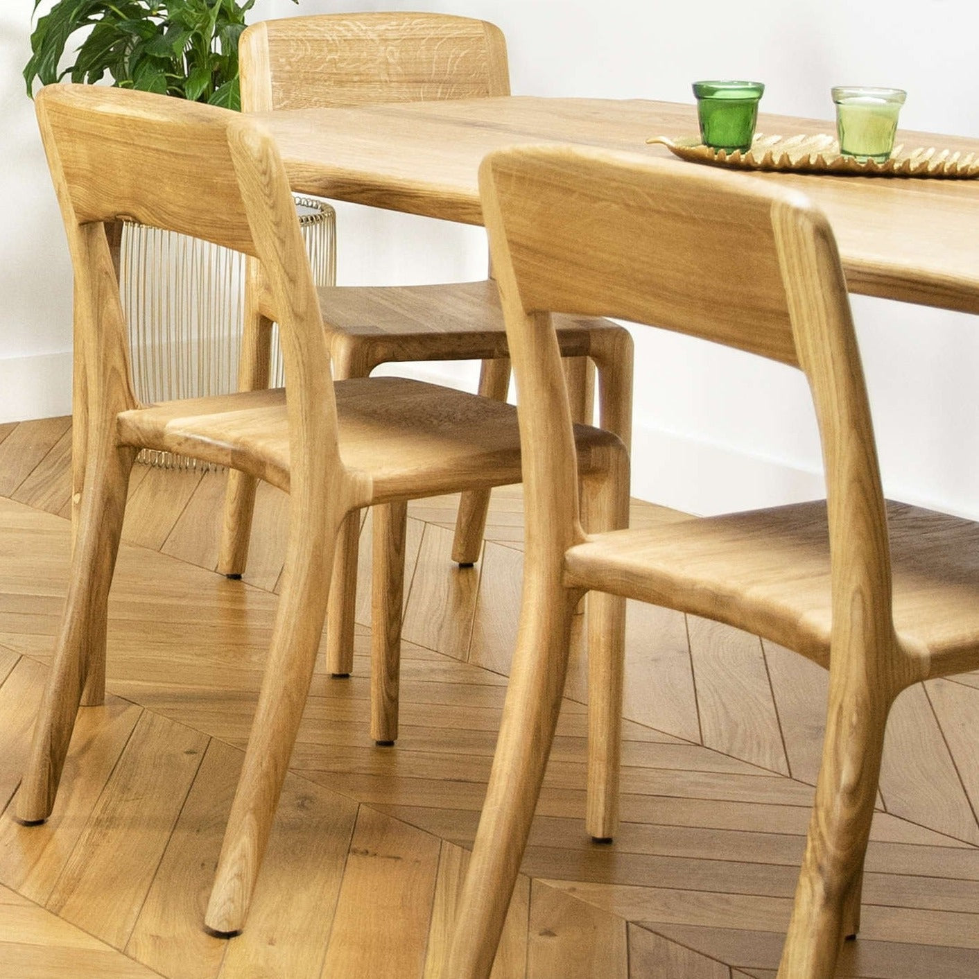 The Flux chair embodies the latest design trends with its simple yet striking oval shape. Crafted entirely from solid wood, available in walnut or oak and offered in several colour options, it epitomises both elegance and versatility.