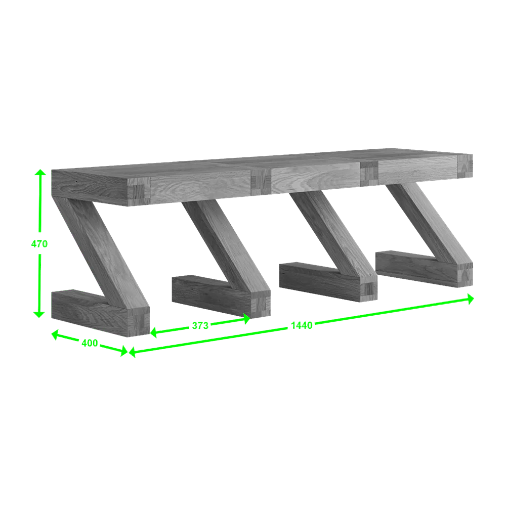 The Z Large Bench is crafted from 100% high-quality oak and features four sturdy Z-shaped legs, providing both stability and a modern aesthetic. It is finished with a durable lacquer for enhanced protection and a polished look.