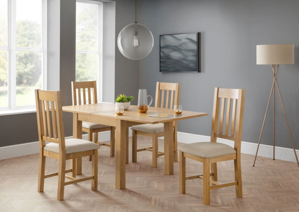 Add stylish functionality to your dining room with the Julian Bowen Astoria Flip-Top Extending Dining Table. Crafted from White Oak and Oak Veneers, this classic design features a Waxed Oak Finish and a clever extendable top for doubling your dining space when needed.