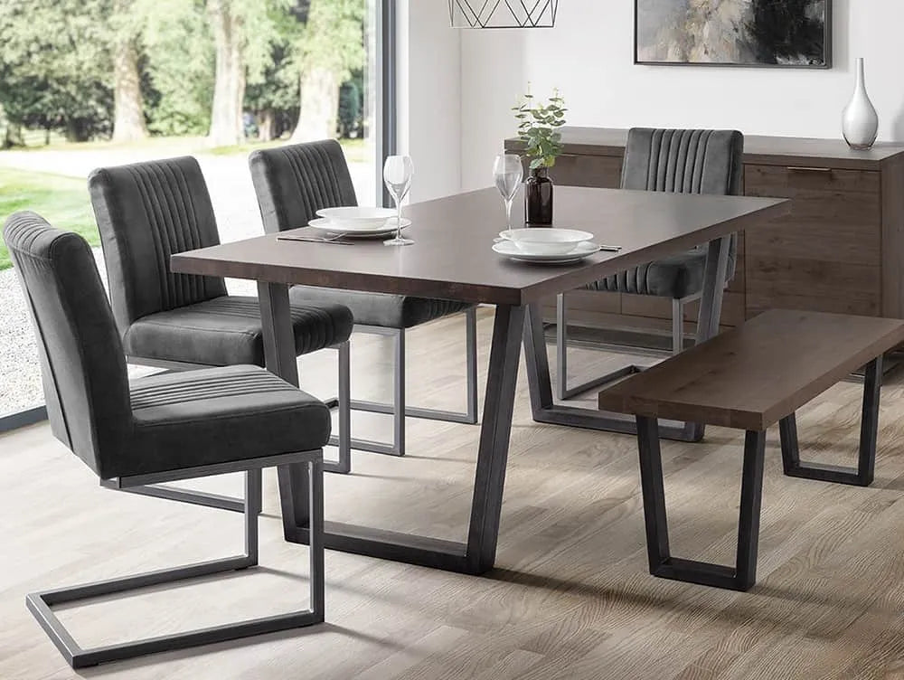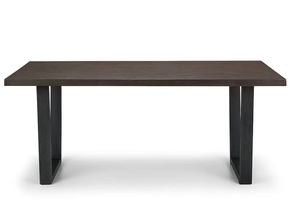 Crafted from solid oak, this dining table showcases a rich dark oak finish that accentuates its captivating natural wood grain. The Brooklyn Dining Table by Julian Bowen exudes a vintage charm with its industrial trapeze-style metal legs. With ample space to accommodate up to six people, it serves as an ideal centrepiece for modern or industrial-inspired decor settings.