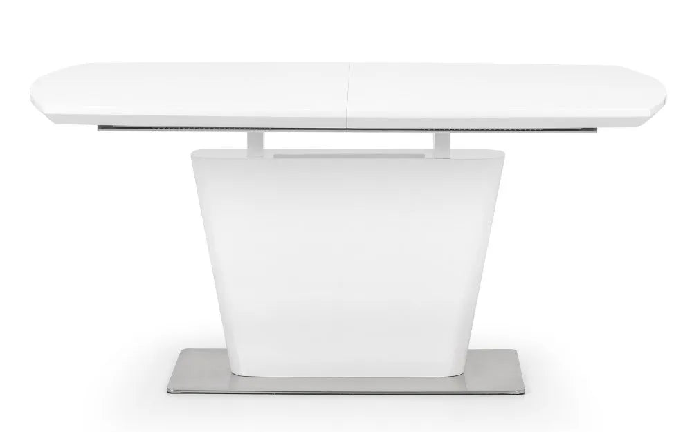 Experience sleek and modern dining with the Como High Gloss Extending Table. This striking table in crisp white high gloss features a sturdy chrome pedestal base and a butterfly extension system. It comfortably seats 6 and makes a lasting style statement. Complete the look with the Como cantilever dining chairs.