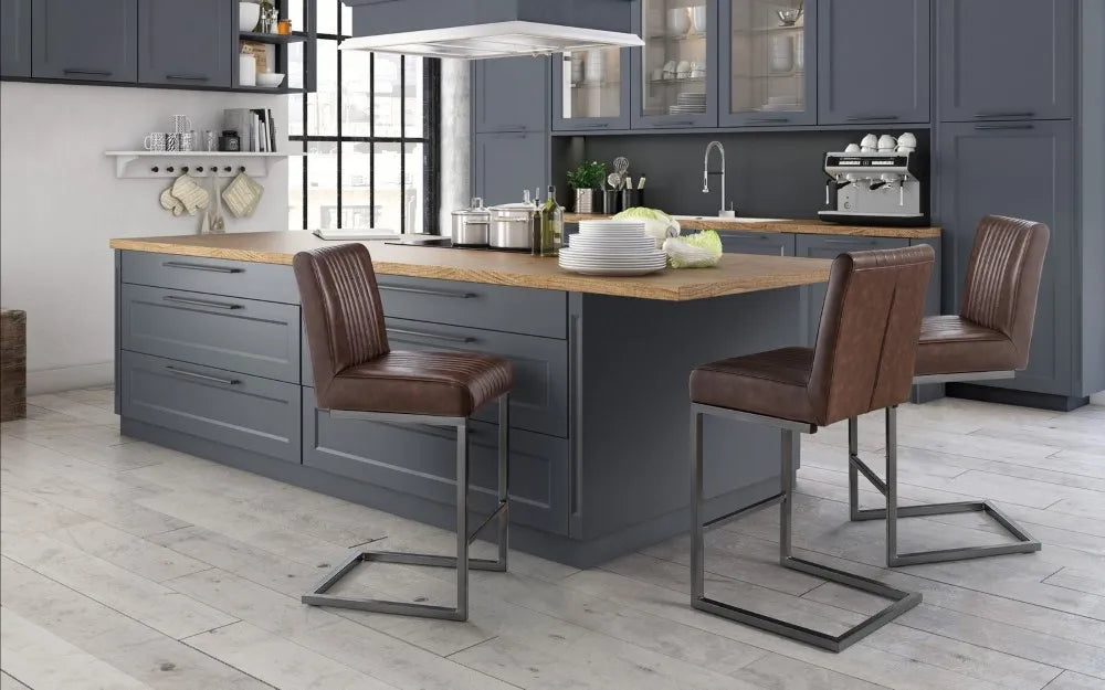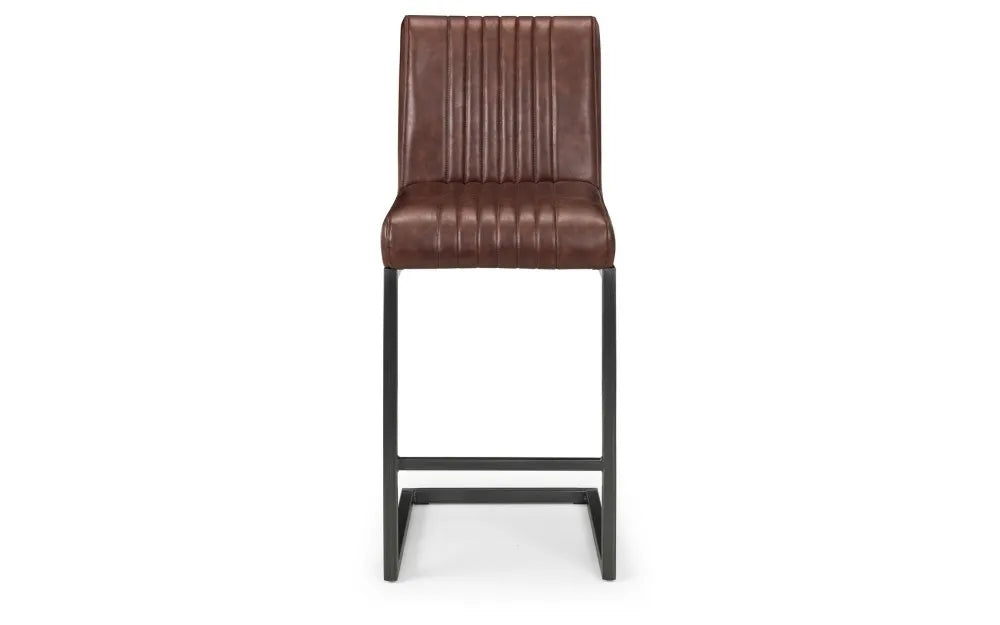 The Brooklyn Bar Stool boasts an industrial, retro design with a vintage brown faux leather finish and cantilever style gunmetal leg frame. Experience maximum comfort and style with this padded bar stool, perfect for any stylish kitchen.