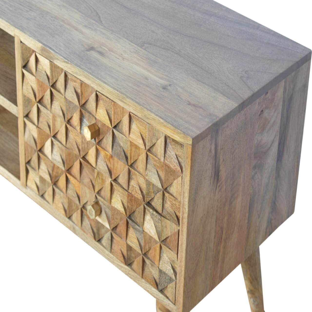 Diamond-Carved TV Stand - 2-Drawer & 2-Shelf Mango Wood