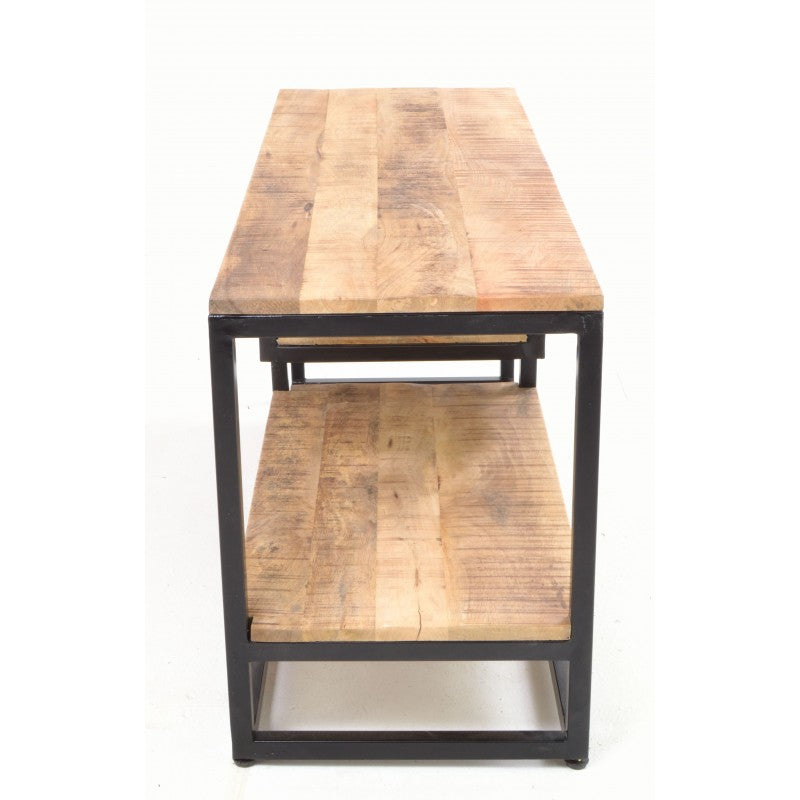 This industrial style stand features sturdy solid mango wood paired with powder-coated steel tubing for both style and durability. With ample storage space and room for up to a 140cm TV, it's everything you need for a functional and stylish entertainment setup.