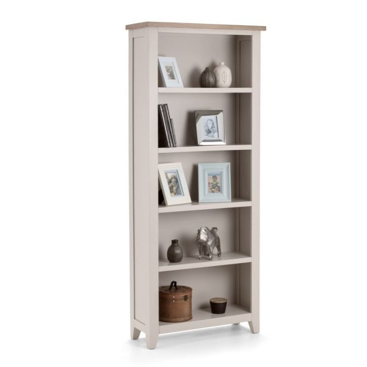 With a painted Elephant Grey finish and a beautiful pale oak top, this tall bookcase is sure to add a touch of sophistication to any room. Crafted from high grade White Oak solids and veneers, this piece is a must-have in both traditional and contemporary homes.