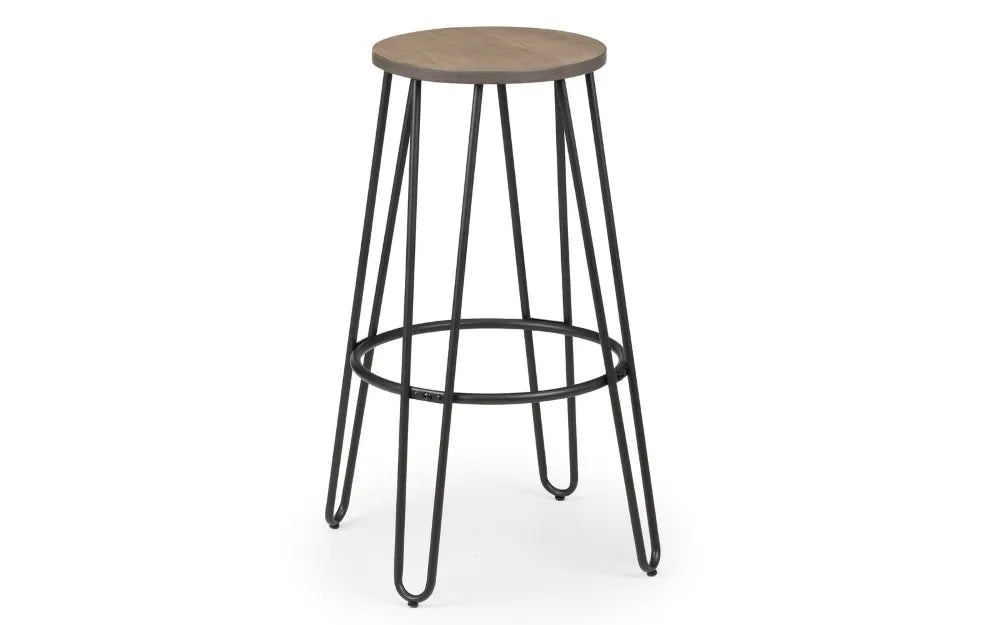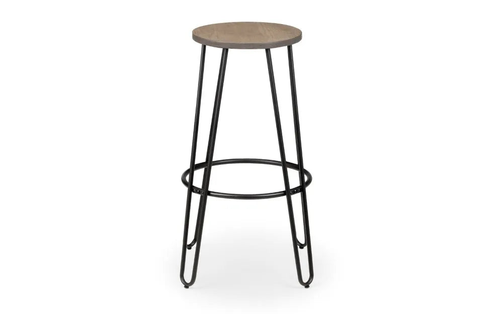 Create an inviting, industrial vibe in your space with the Dalston Round Bar Stool. Its hair pin legs and combination of solid Elm wood and powder coated steel provide a durable and space-saving design. Pair it with the matching bar table for a complete industrial bar set.