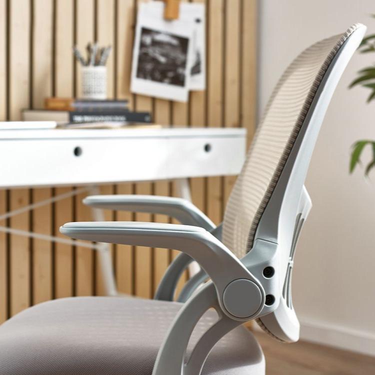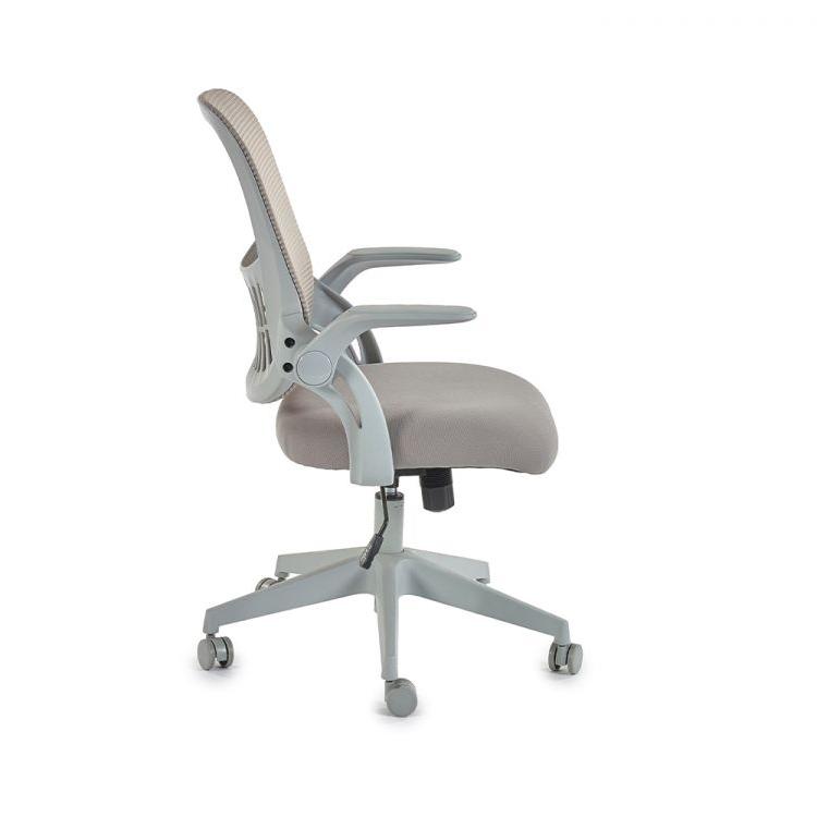 The Juno Office Chair seamlessly blends comfort and style to enhance your workspace. Featuring a carefully designed curved grey mesh back, it offers optimal support and breathability for all-day comfort. The grey frame back provides extra support, promoting ergonomic excellence and encouraging proper posture for a healthier work experience. With a grey base on five casters and an adjustable height and tilt mechanism, this chair allows you to customise your seating position. The flip-up armrests add convenience and flexibility, making it a versatile addition to your office setup.