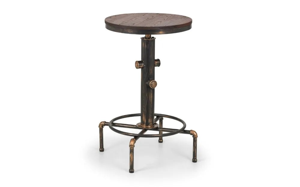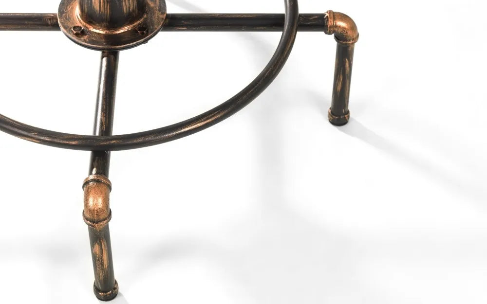 Introducing the Rockport Pipework Bar Table, the perfect addition to any home. This vintage-style table features a brushed copper finish, realistic fire hydrant design, and a rustic elm tabletop for a unique look.