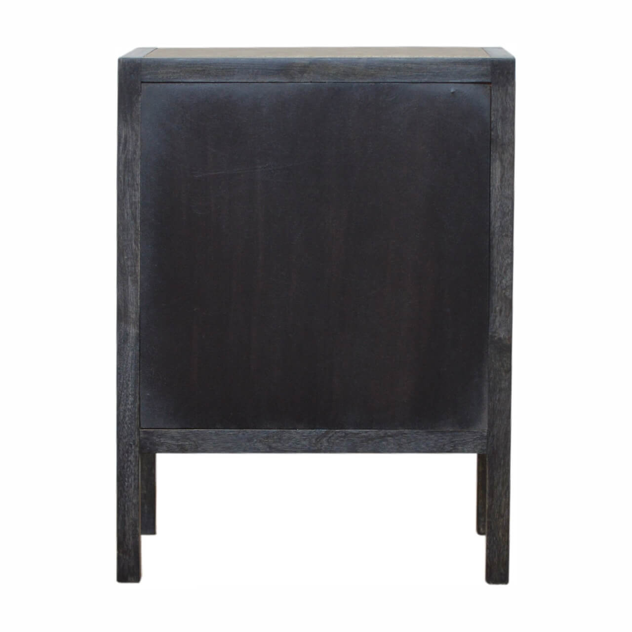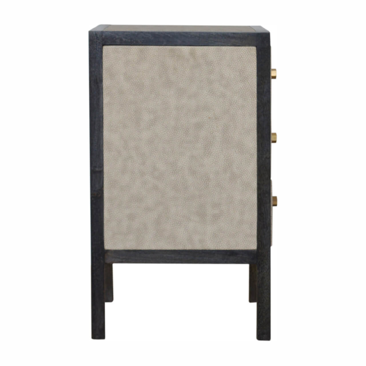 Wooden Bedside Table with Faux Leather and 3 Drawers, Ash Black Finish