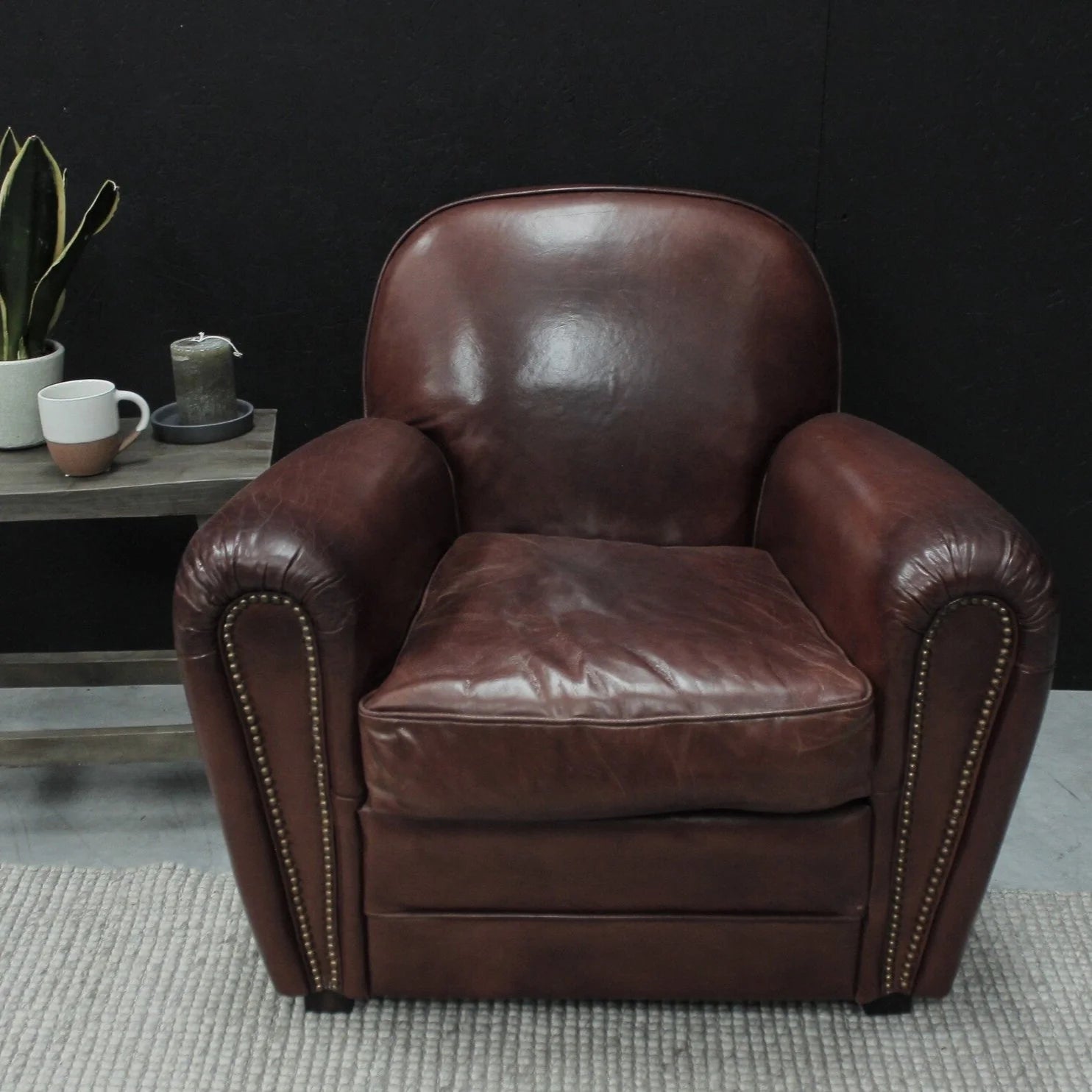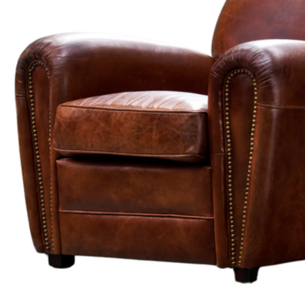 With a balloon back design and top quality aged leather, this armchair exudes elegance and sophistication. Its French cinema feel will transport you to a world of luxury and comfort.