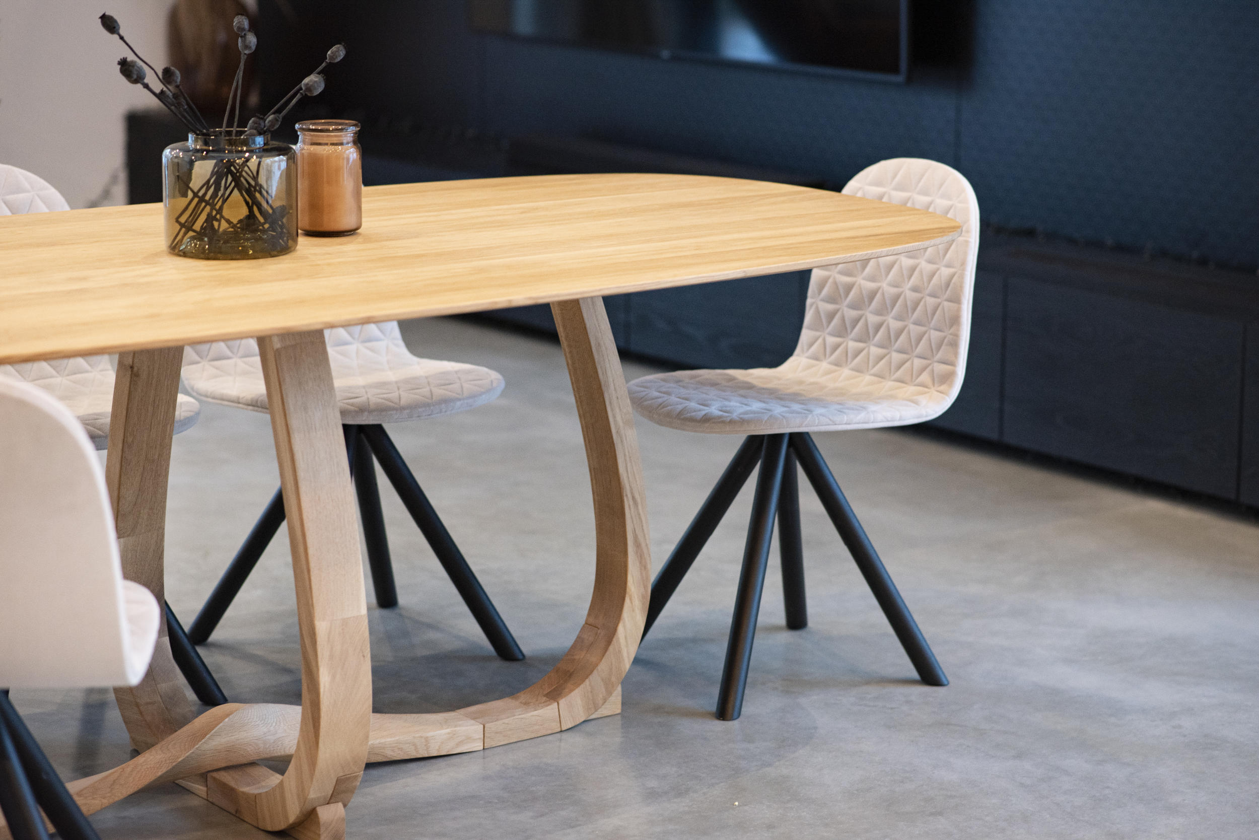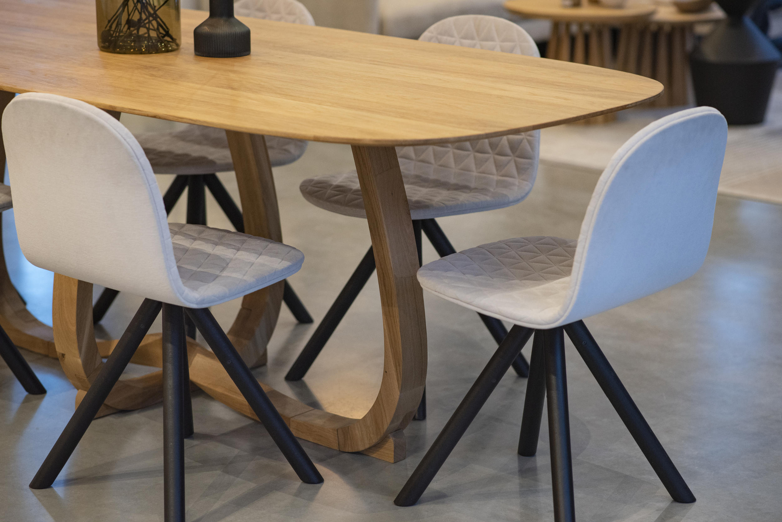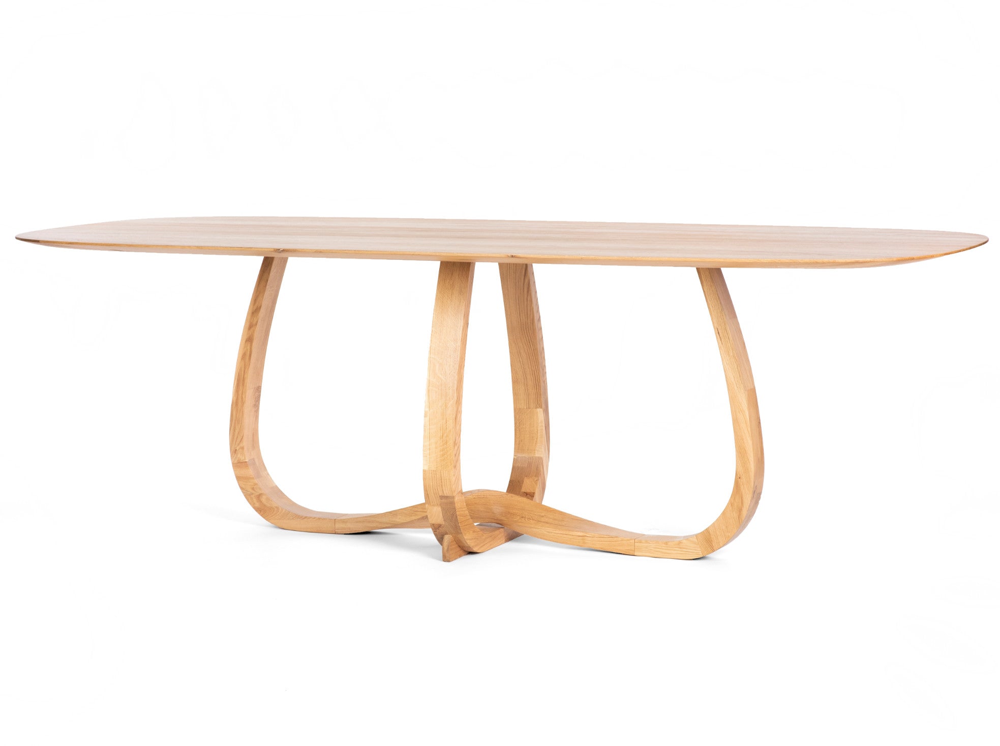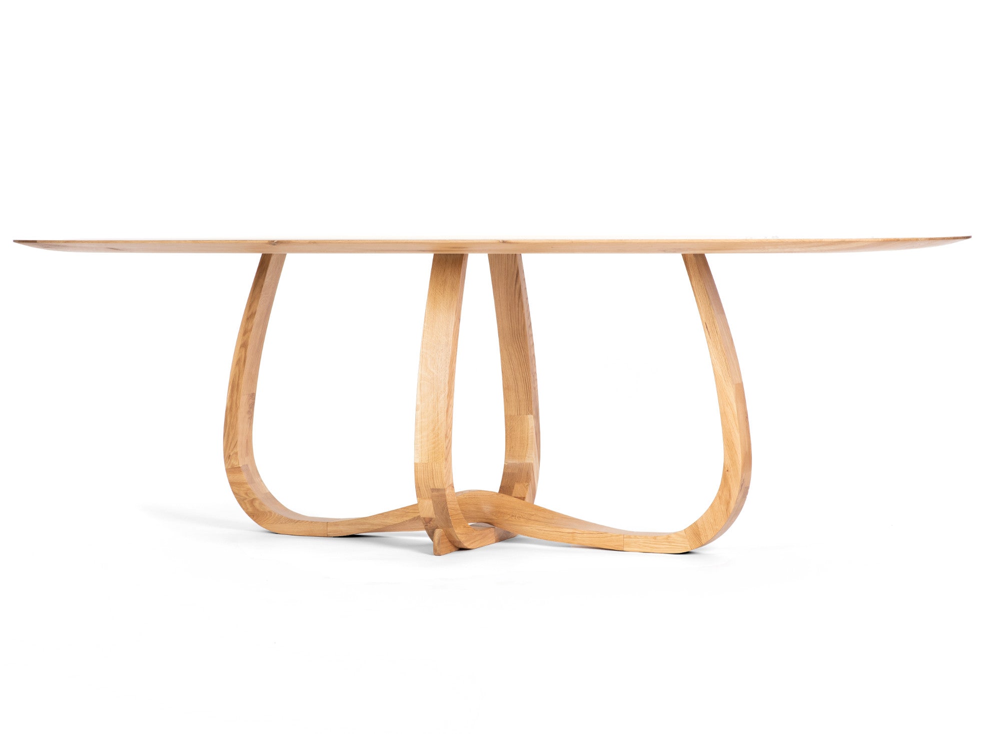 The most characteristic element of the table is the two elegant wooden loops intertwining in an artistic dance. The oval top, intricately milled, gives the table a distinctive character, simultaneously imparting a sense of lightness. Thanks to this delicate construction, the table becomes not only a practical dining spot but also an artistic masterpiece that draws the eye and delights.