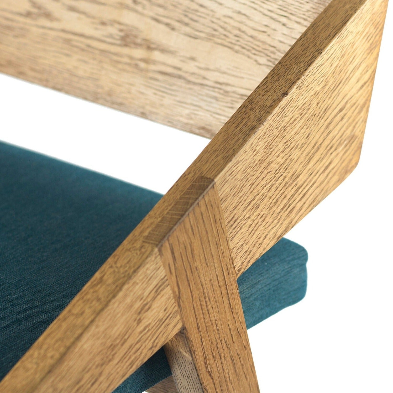 A piece of furniture designed and manufactured to stand out from the crowd. We have combined the minimalism that characterizes us with the design influences of the 1960s, ensuring exceptional durability and ergonomics, which are so important in this type of furniture. It's Pico. Made of solid oak, with premium padding certified for 165,000 cycles in the Martindale test, guaranteeing exceptional durability and ease of cleaning. Also equipped with two satin stainless steel bars, with the front bar serving as a leg support.