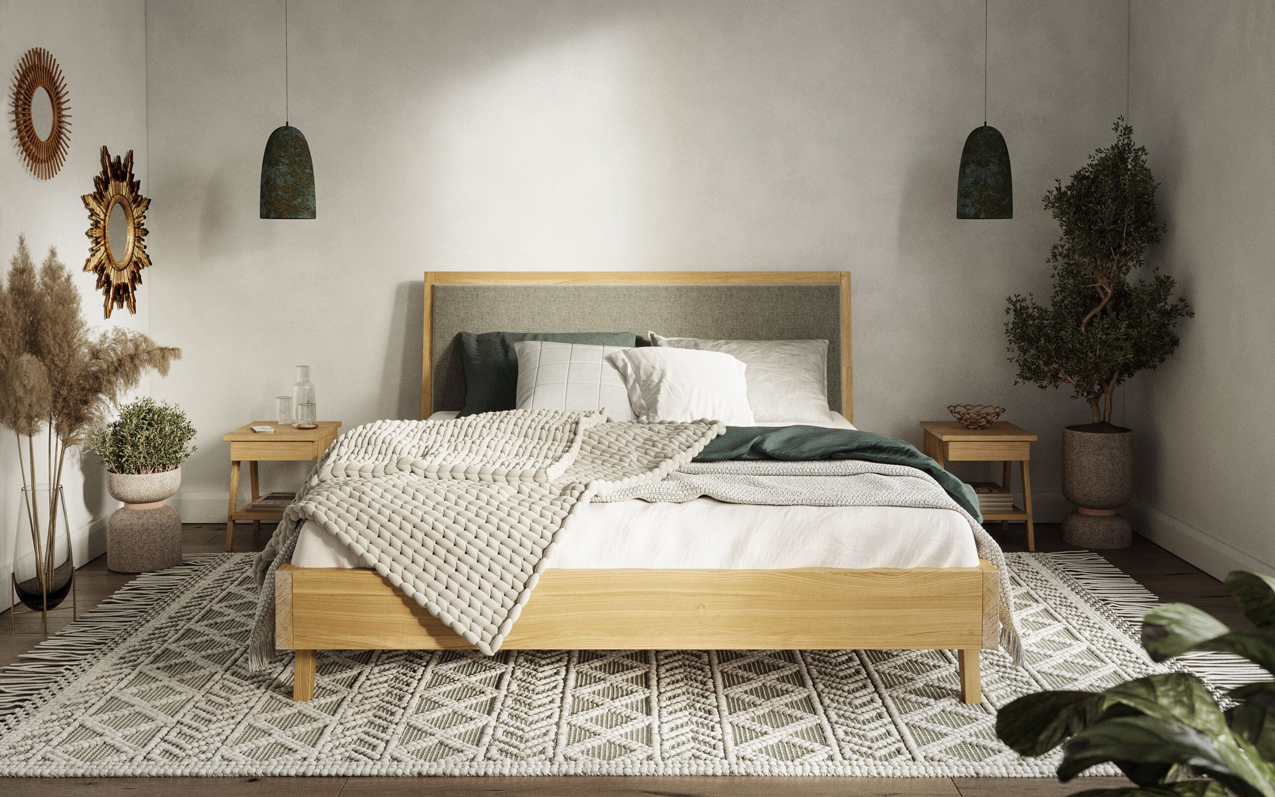 The sloping, upholstered headboard of the Pico bed will make you not want to get out of it. This exceptionally comfortable and functional bed is stylistically matched to the entire Pico series. The bed is sold without frames and a mattress. In the middle of the bed is a slat on which the frames can be placed, supported by an additional leg.