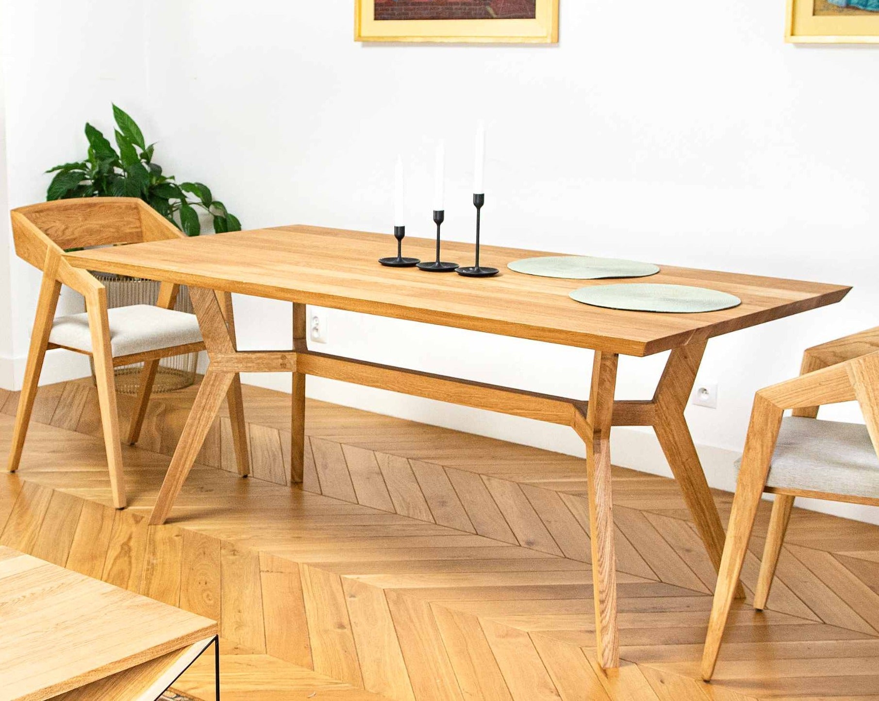 Handcrafted from oak wood, Pico Table offers a strong and durable yet lightweight design. The unique undercut top adds style and allows for easy arrangement of chairs around the table. Perfect for any interior.